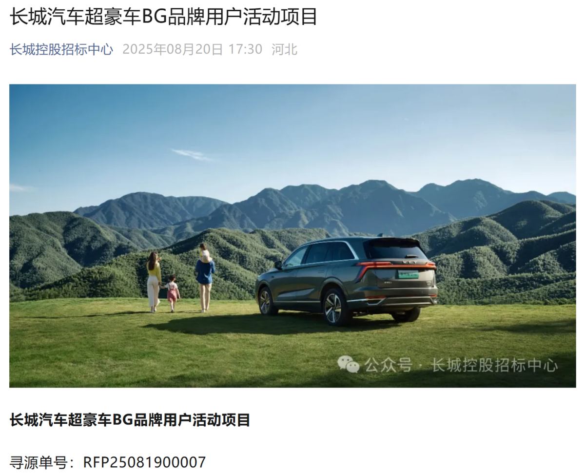 最近,长城控股招标中心又相继发布了《长城汽车超豪车BG品牌策略项目》、《长城汽车超豪车BG品牌用户活动项目》等招标公告,公开招募服务长城汽车超豪车BG的供应商。这意味着传闻已久的长城超豪华轿跑项目正在进入落地倒计时。