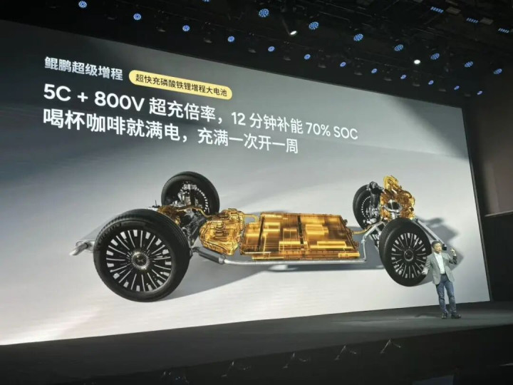 例如全新大三排SUV智己LS9,电池容量分52和66kWh两个版本,纯电续航分别达到320和402公里,全系标配800V平台;小鹏X9增程版,全系标配800V平台+63.3kWh超大电池组,纯电续航超过450公里,10%—80%快充仅需12分钟。